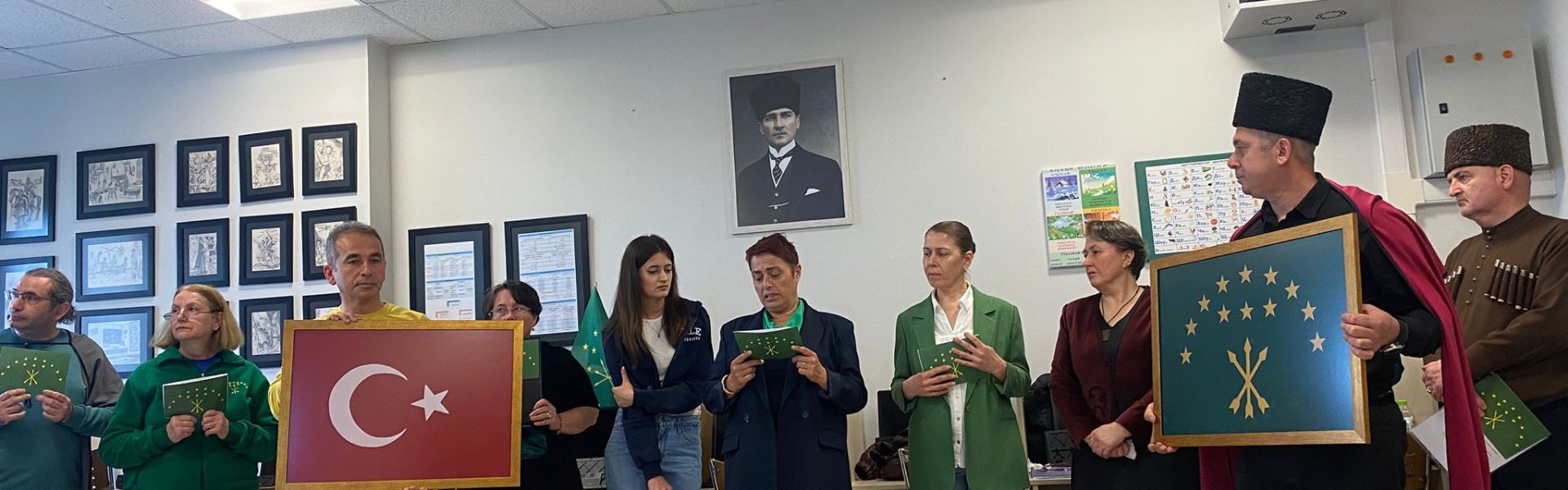 Bu yıl Düzce Üniversitesi Kafkas Dilleri ve Kültürleri Bölümü, Çerkez Dili ve Edebiyatı Anabilim Dalı Lisans öğrencileri de bir süpriz yaparak özel bir Bayrak Günü kutlaması hazırladılar. 22 Nisan Çarşamba günü Fen Edebiyat Fakültesinde bulunan Çerkez Dili ve Edebiyatı Laboratuvarında gerçekleştirilen etkinlikte günün anlam ve önemine vurgu yapan şarkı ve şiirler söyleyerek kutladılar. Bölümün öğretim üyelerinden Dr. Öğr. Üyesi Saida Abregova Nemlioğlu’nun günün anlam ve önemine dair hazırladığı konuşma metnini Adıgece ve Türkçe olarak aşağıda bulabilirsiniz.